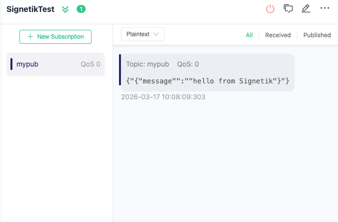 This guide covers how to configure an MQTT client on a Signetik device, publish messages from the device, and use MQTTX — a cross-platform MQTT client — to subscribe to device messages and publish commands back.